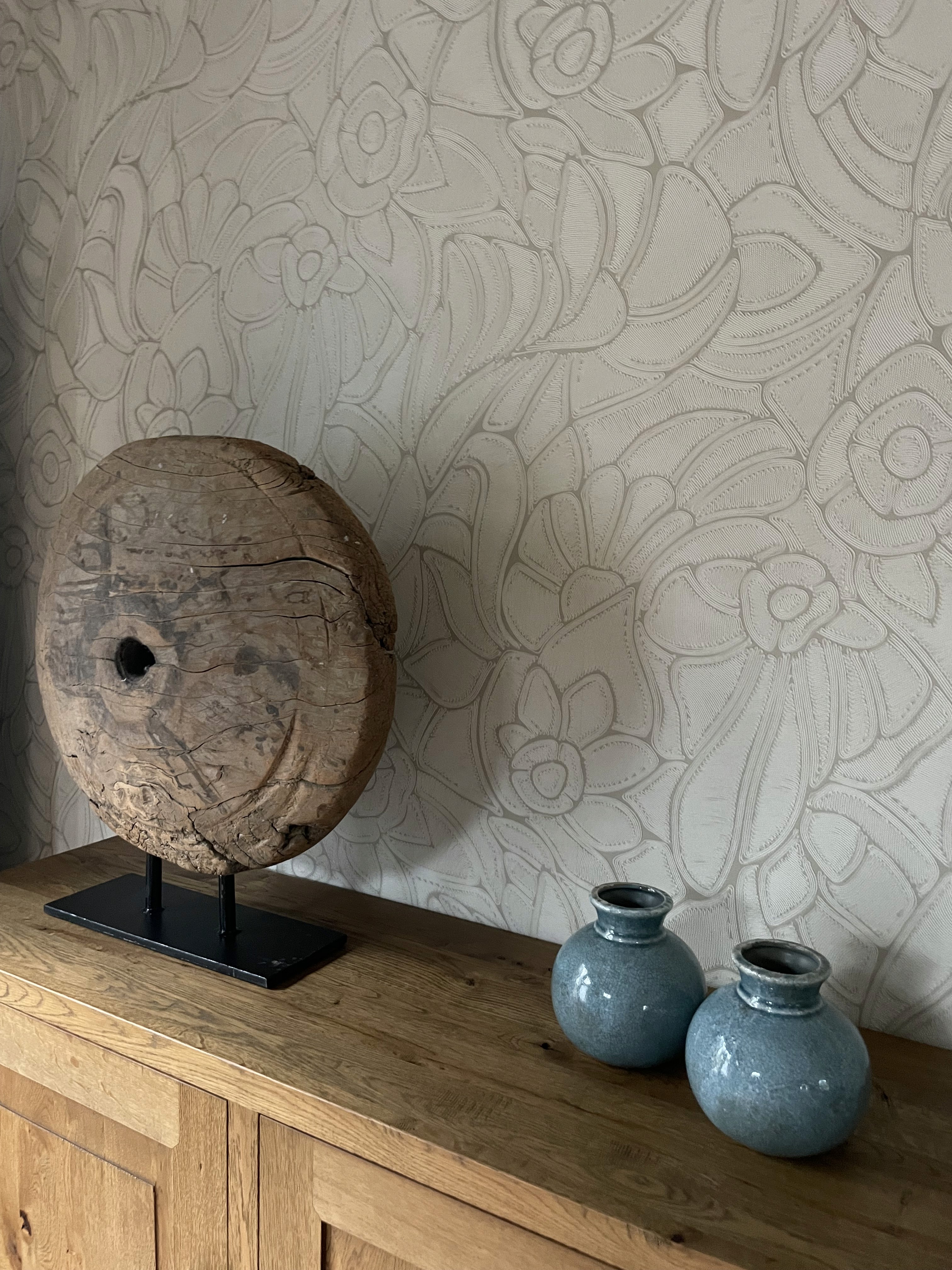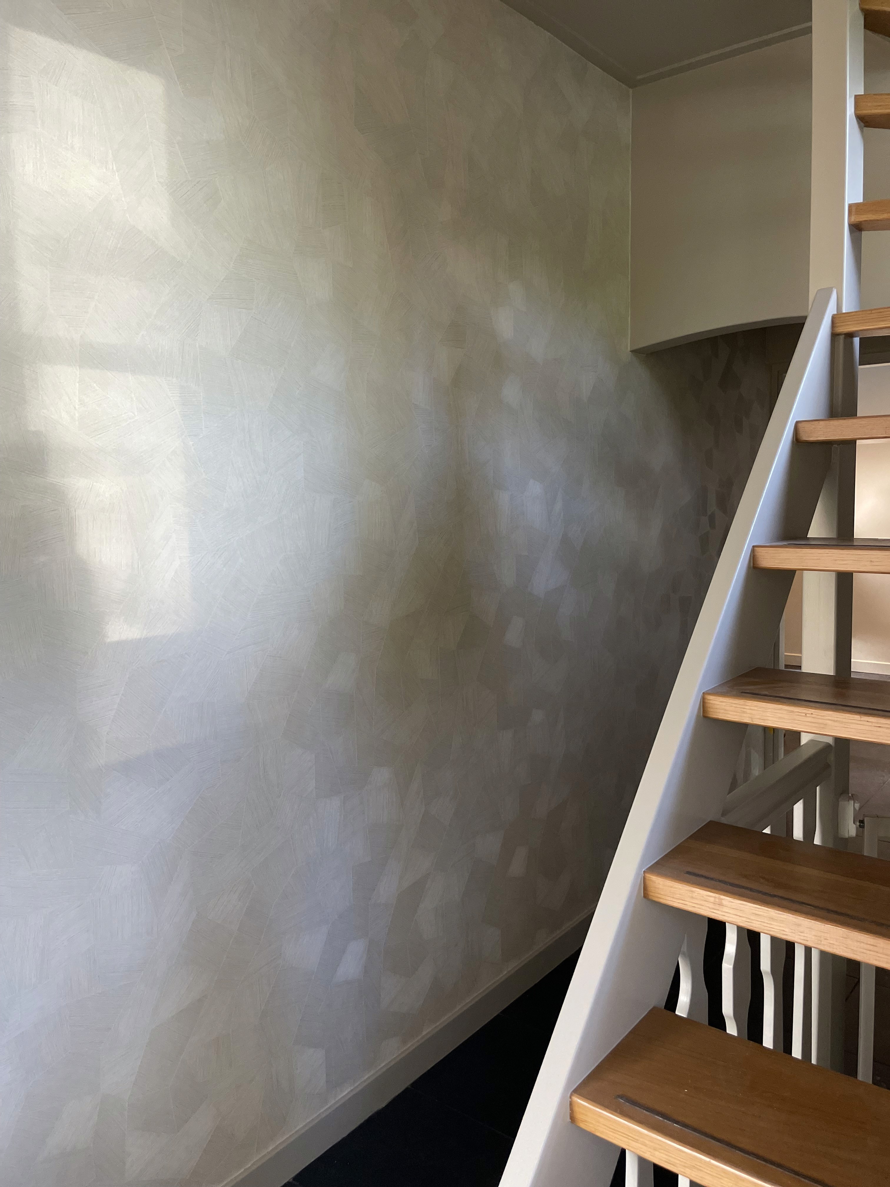 De uitdaging voor dit project was de combinatie van de diverse soorten lak-muurverf en behang goed op elkaar af te stemmen omdat we met 1 kleur gingen werken. Door de samenstelling van verf, latex en spuitverf kan er een kleurverschil ontstaan. Kleurstalen zijn gemaakt van alle materialen en vervolgens zijn we er mee aan de slag gegaan.