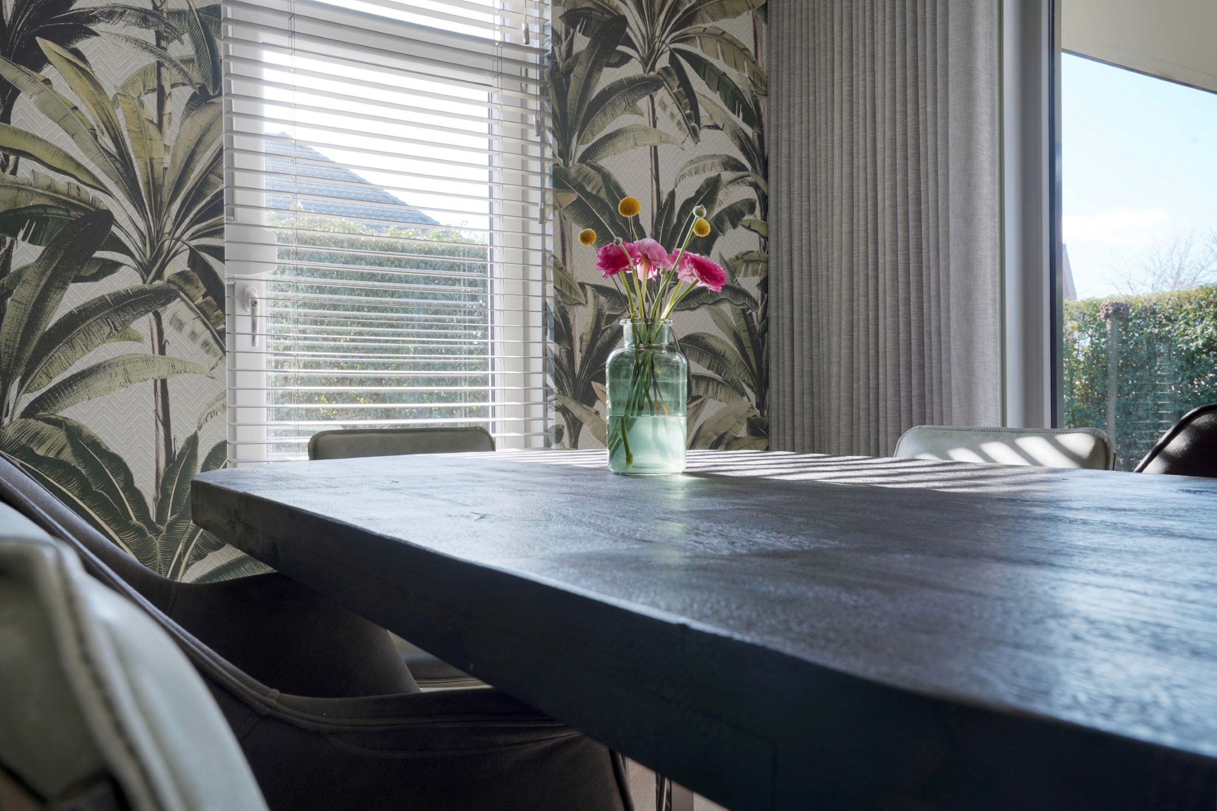 Samen zijn we op pad geweest om de meubels en accessoires te shoppen. De styling met de verschillende stoffen en materialen, de meubels en de accessoires maakt dat we ons helemaal thuis voelen in onze prachtige huis. Jolien heeft precies de sfeer gecreëerd waar we naar op zoek waren en wij genieten nog steeds van het eindresultaat.