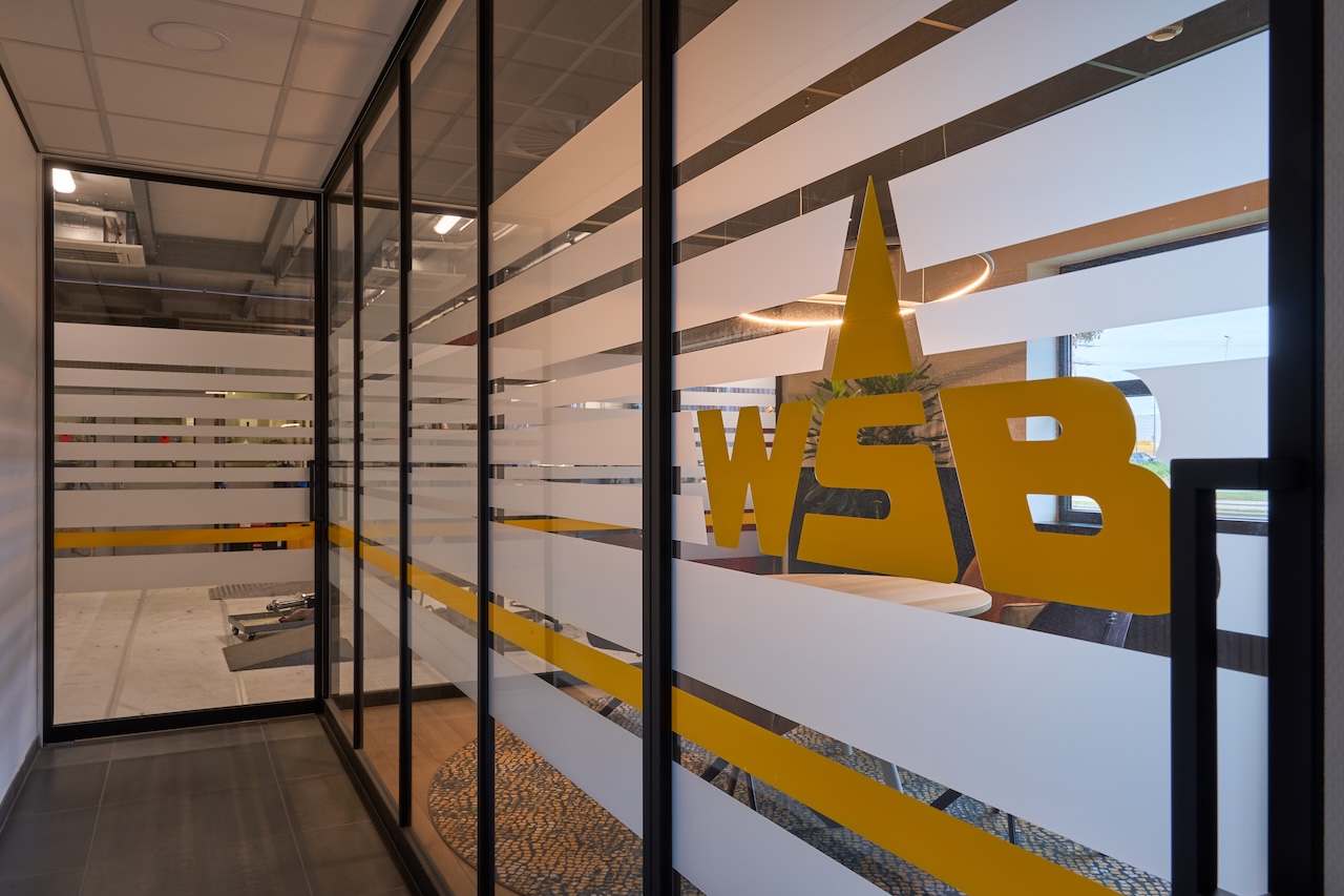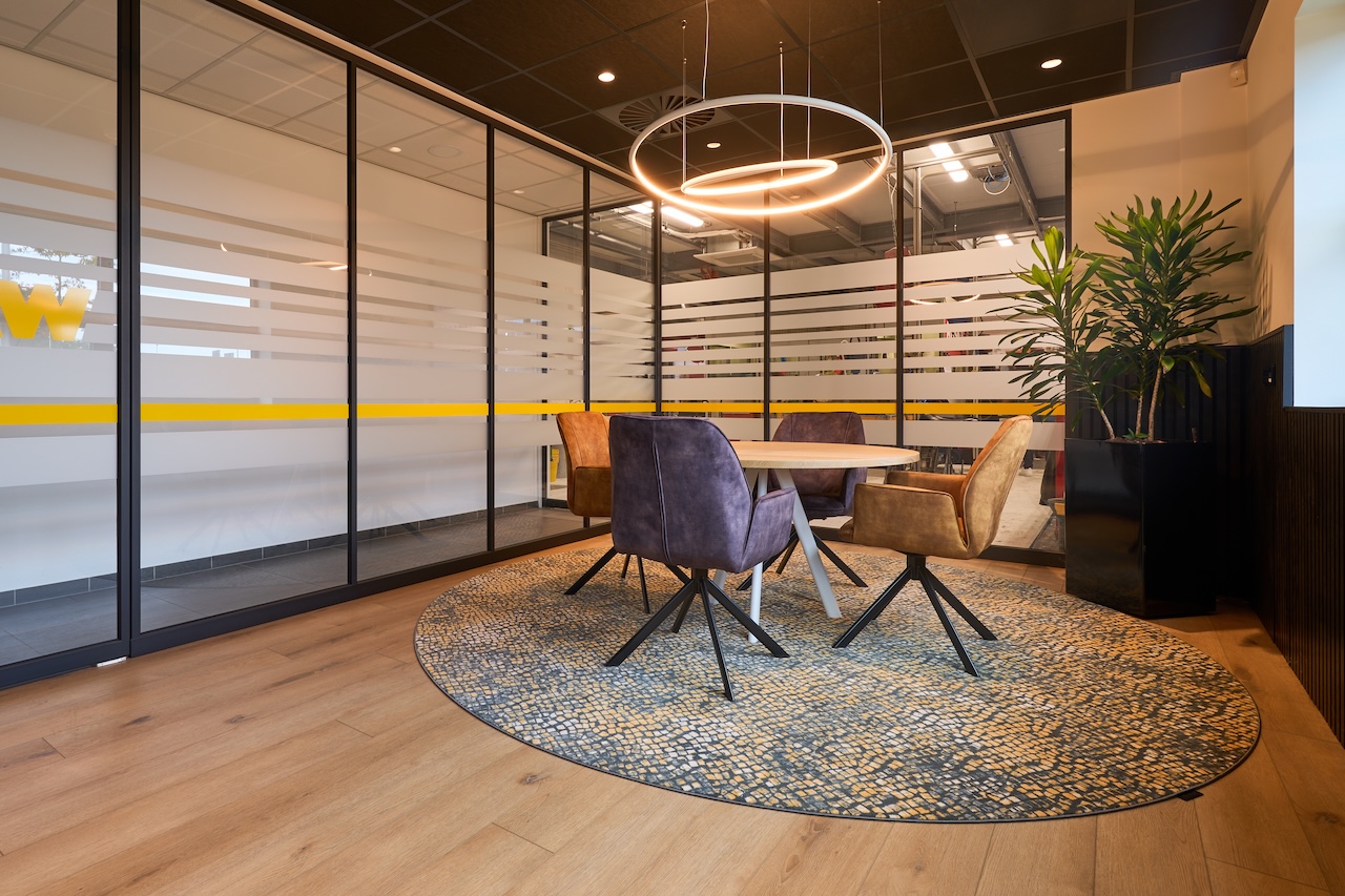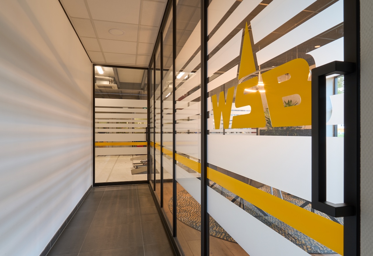 Het uitgangspunt was het logo van WSB Finishing Equipment. Geel en zwart, met wit als basiskleur. Geel sterk aanwezig doordat de kleur terug komt in de wandafwerking en als detail terug laten komen in het karpet en fauteuils. De openheid hebben we gecreëerd door de wanden te vervangen in glas. Door het samenwerken met diverse bedrijven van uit mijn eigen netwerk en het netwerk van de opdrachtgever, hebben we met elkaar dit project succesvol opgeleverd. Te denken valt aan de aannemer voor vervangen van het plafond en verwijderen van de wanden, stoffeerders voor de vloer, schilders voor het behang, en sauswerk, elektricien en installateur en ook de aanschaf van verlichting, meubilair en de glazen pui was ook een onderdeel welke onder mijn verantwoordelijkheid viel.